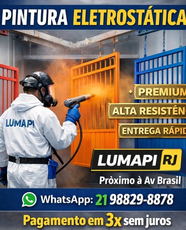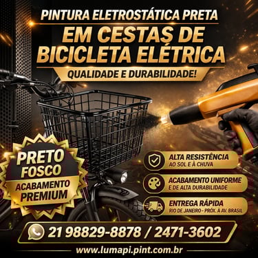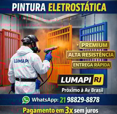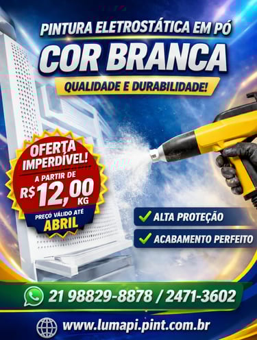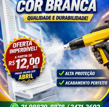 Pintura Eletrostática em Pó de alta qualidade com variedade de cores de acordo com seu projeto. Lisa ou Texturizada.
